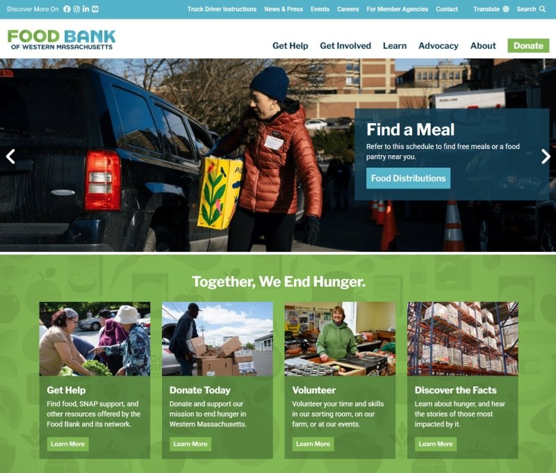 The result is a fully responsive, bilingual website that’s easier to navigate, easier to access, and more aligned with their mission. Key features include an interactive agency locator, streamlined donation and volunteer pathways, and improved accessibility across devices and languages. By placing clarity, compassion, and community at the core of the redesign, The Food Bank is now better equipped to connect, inform, and make an even greater impact across Western Massachusetts.